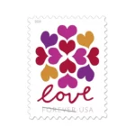 Hearts Blossom is the latest stamp in the Love series from the U.S. Postal Service. The stamp art features the word ??Love?? in cursive script below 12 colorful hearts meant to visually express love??s joyful, bountiful nature. The color palette ?? red, purple, orange and pink ?? is intended to create a happy and positive feeling. Art director Antonio Alcal?? designed the stamp.