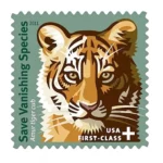 This is the Save Vanishing Species stamp – featuring an Amur tiger cub graphic, one of the magnificent animals this stamp is designed to help.