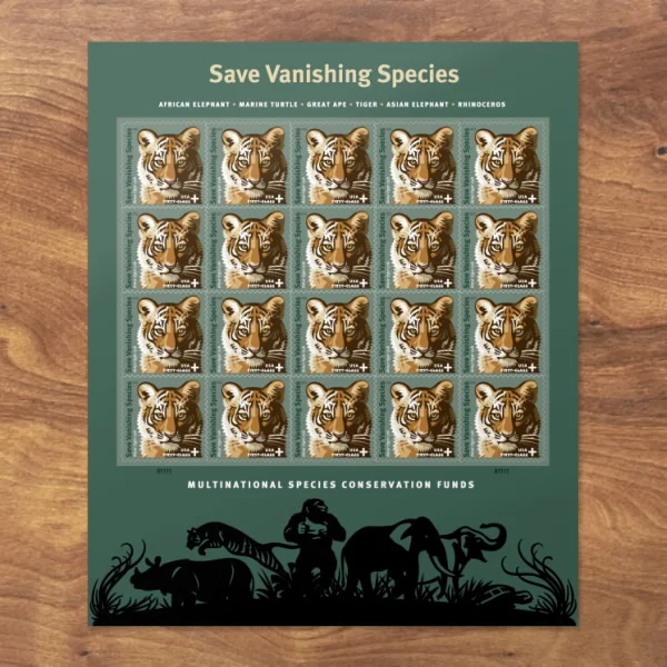 The Save Vanishing Species semi-postal stamp sold for 11?? more than the first-class postage rate, with additional funds supporting global conservation through the US Fish and Wildlife Service and the Wildlife Without Borders program.