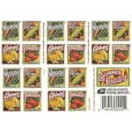The U.S. Postal Service celebrates a few of those favorites-corn, tomatoes, cantaloupes, and watermelons-with four new Stamps. Vintage produce advertising, including 19th- and early 20th-century crate labels, seed packets, and catalogs, inspired these stamp designs.